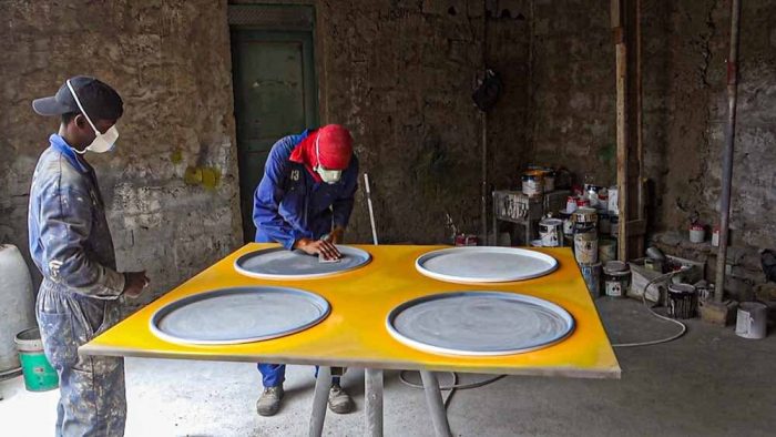 Like in the other projects, the purpose was to work with the fewer resources as possible and work with the artisans of the center in a self-build using recycled materials workshop. Funny enough, the budget has grown now but we kept the concept. The idea is to really bring to the center of the city and pay homage to a material used in the periphery. More than that, it also has a specific function.