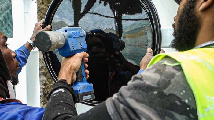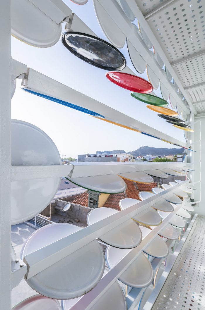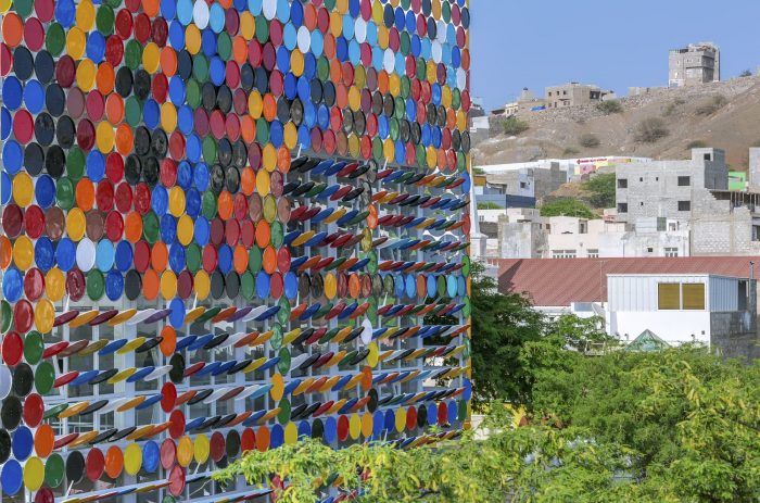 Our approach was to knock down the walls and open the patio to the city and to use those barrels caps and create a detached skin that covers the entire museum, paying homage to this simple object that is so entrenched into the lives of the people of Mindelo.
