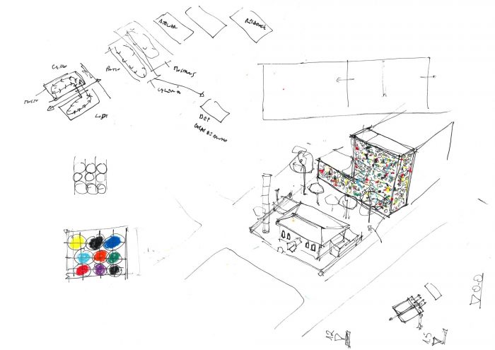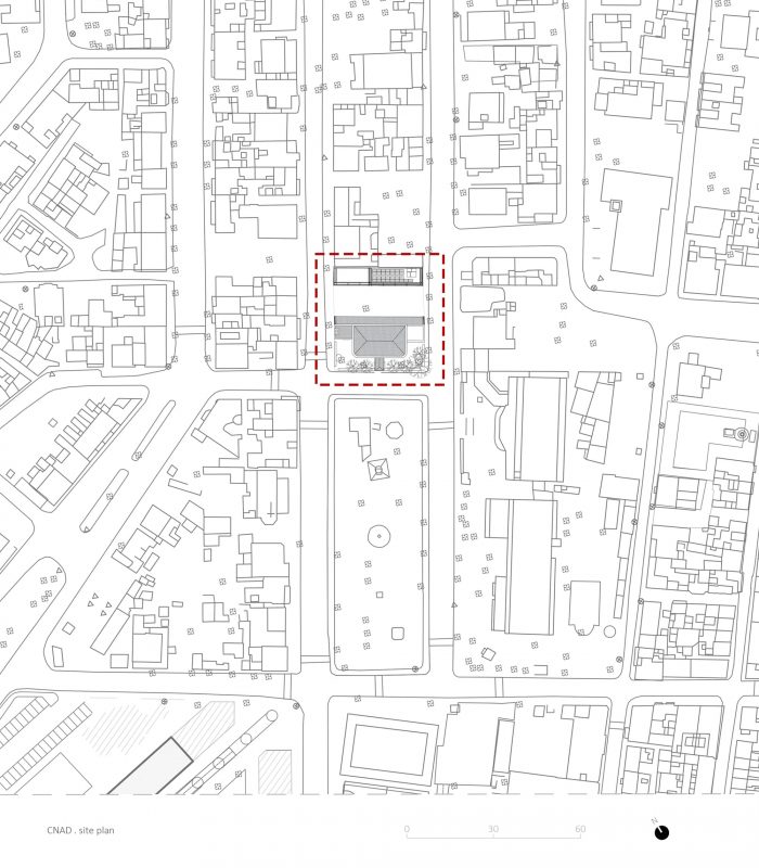 这个地方包括一个在明德卢历史上发挥了重要作用并被修复的老房子。除了这个建筑,在后院还有一个露天的天井和第二个建筑。我们被要求处理修复、天井和后面的新建筑,建立与老房子的联系。展览、咖啡馆、商店和品牌都来自CNAD策展和设计团队。