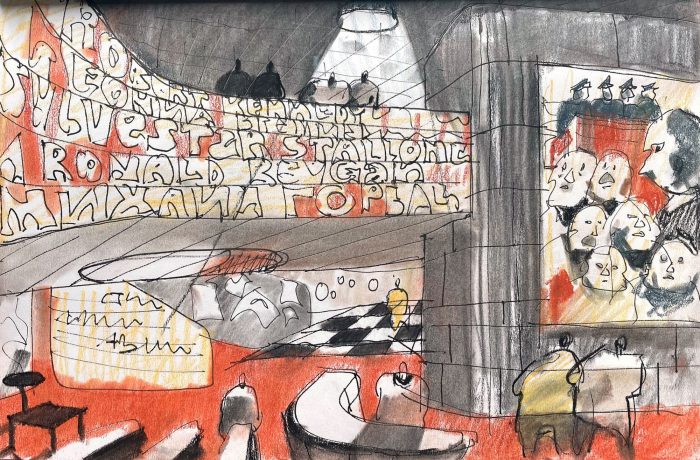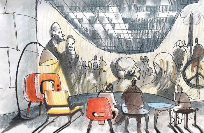 通往其他展区的楼梯墙壁上也布满了精心设计的主题涂鸦。从上面的台阶向底层望去,不可避免地落在一幅尼基塔-S-赫鲁晓夫和约翰-F-肯尼迪的双人画像上,画像上的口号是 "两面性,同一个故事",它挑起了博物馆概念的红线,指的是冷战时期的国际复杂性。一楼的棋盘再次从这个角度吸引了观众的目光,这并非巧合。