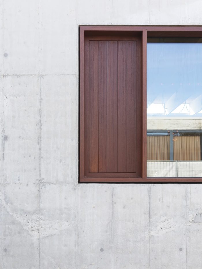 每个教室都享有框架式的视野,并通过屋顶结构以特殊的方式吸收日光和绿色的室外环境。所用的两种材料,即木材和混凝土,都被提纯到了骨子里。支撑结构被设计成一个可以长期通用的开放教室的智能结构。