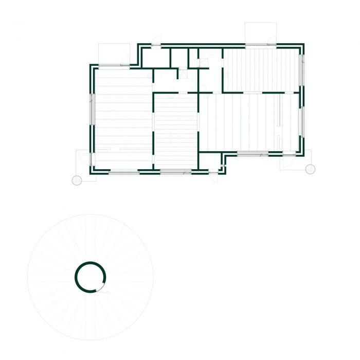 新的幼儿园被设想为两对教室的巧妙串联,一个大班和一个小班连在一起。所有的教室都像围墙一样连接起来,以便共同使用教室,鼓励班级和教师之间的互动。卫生室和技术室被放置在两对教室之间的中枢位置。