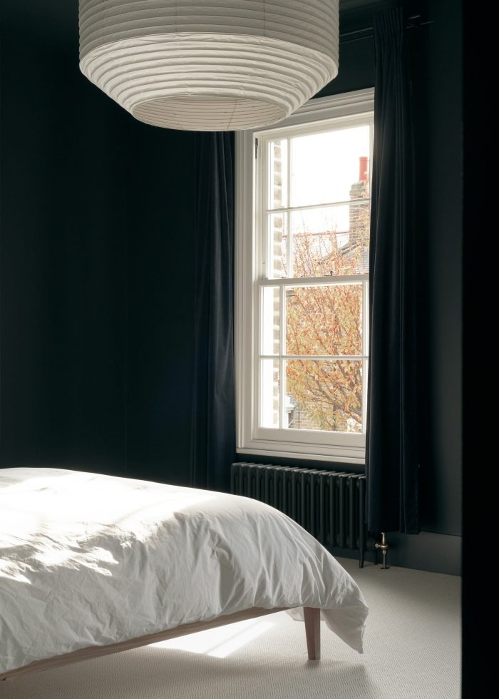 Upstairs DGN Studio applied a lighter touch, removing a disused chimney breast and reorganising the bathroom into a functional, well-lit private space. The bathroom window previously looked into the neighbouring shower, so DGN Studio shifted this across and added a skylight over the bath to reintroduce light and privacy for both the clients and neighbours.