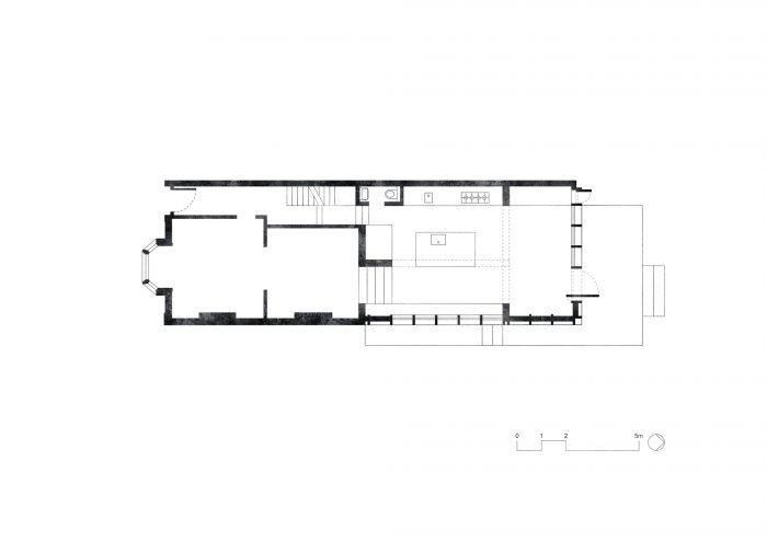 DGN工作室摒弃了维多利亚时期典型的互不相连的小房间安排,选择了一个在物理上和视觉上都很流畅的功能性平面图。平行的阶梯式开口将每个空间连接起来,并提供了从入口和前客厅到后花园的长距离开放视野。