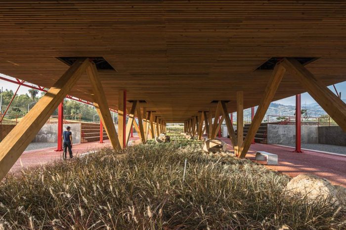 For this reason and on the initiative of the El equipo Mazzanti and the company Odinsa, was presented to the Colombian State, a new type of communications infrastructure and road operations. These control and operations centers (CCO) usually only served as buildings connected to the highways and their operation; without any kind of relationship with the surrounding communities. The proposal included multiplying the use of control and communications buildings with training classrooms, product collection center, market square for the products of the region, outdoor cinema, and sports fields, making CCO stop being just structures designed for efficiency and become places for building community.