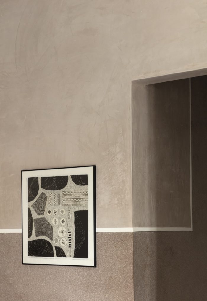 为了帮助抵御炎热,房子也有厚厚的外墙和一个用石灰 "chuno "做的凉爽舒缓的内部,帮助房间从内部冷却。这座房子是当代建筑的一个例子,它在很大程度上依赖于我们与生俱来的对气候和材料的了解,这些材料在这样恶劣的气候地区也能发挥作用。这座房子从外面看就像一个盒子,有独特的材料性,一个涂成黑色,另一个使用小的定制可爱的siporex砖,非常有触感,语义使轨道走廊的逻辑和两侧的体积非常明显。在大体上确定了一些小的口袋,这些口袋刺破了它,绿色被允许从内部生长。