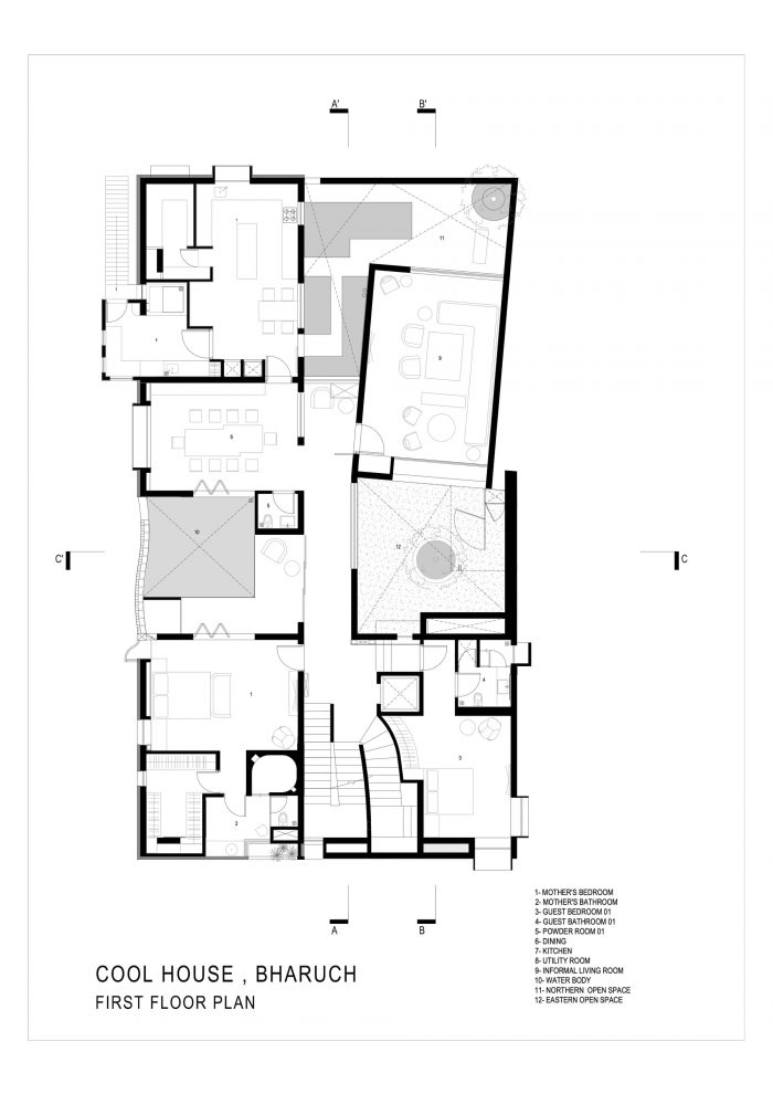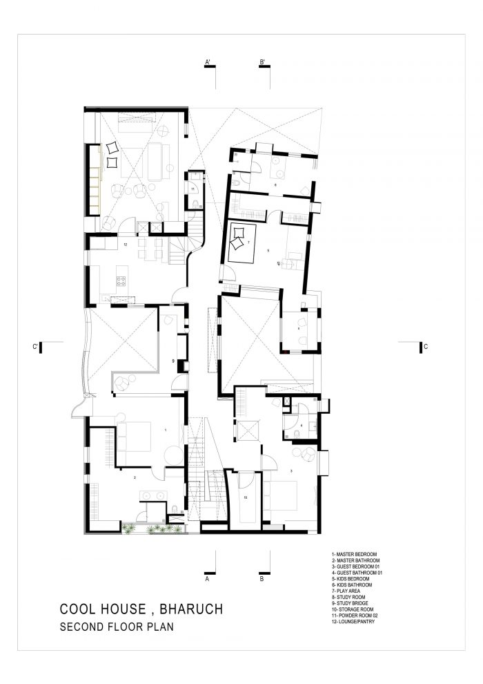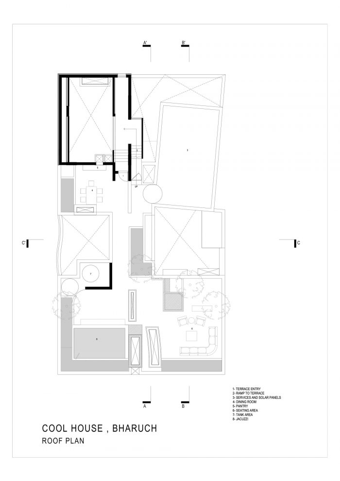 We believe that architecture is a response to many parameters, context, site, vegetation, geography, and climate. When building in a dry and arid place like Bharuch, the heat, locally called "loo" in Guajarati was a big such parameter that the architecture had to respond to. When making a house, it is imperative to take cognizance of many practical parameters of comfort, and for this house in Bharuch it was particularly tackling the summer heat. The name Cool House has come from the way the house has been designed, a respite in the summer, a tree's shade under the scorching sun, the house as in the words of our patron is like a funnel that channels all of Bharuch's wind into the house, making it a cool comfortable haven to live in.