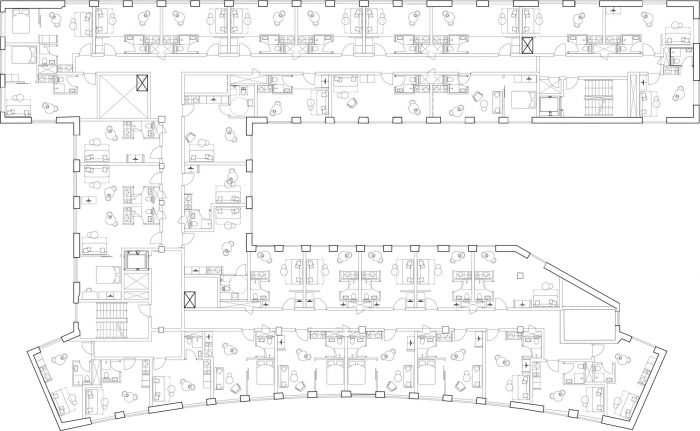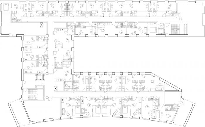 1936年的现代主义建筑的曲线形状在新增加的建筑中得到了高度的扩展。这一改造使原工厂建筑在街道上的新月形更加清晰。这座老建筑已被保护当局指定为具有较高的保护价值。因此,增加新的扩展部分的任务包括对现有建筑的极大关注。