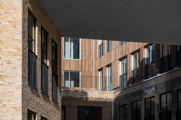 The existing factory building has until recently been used as a school. In this way, it has lived a changeable life and has shown its worth through several different functionalities. In the transformation, the south gable has been opened to provide more daylight into the green courtyard – and thus to the homes facing it.