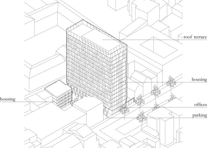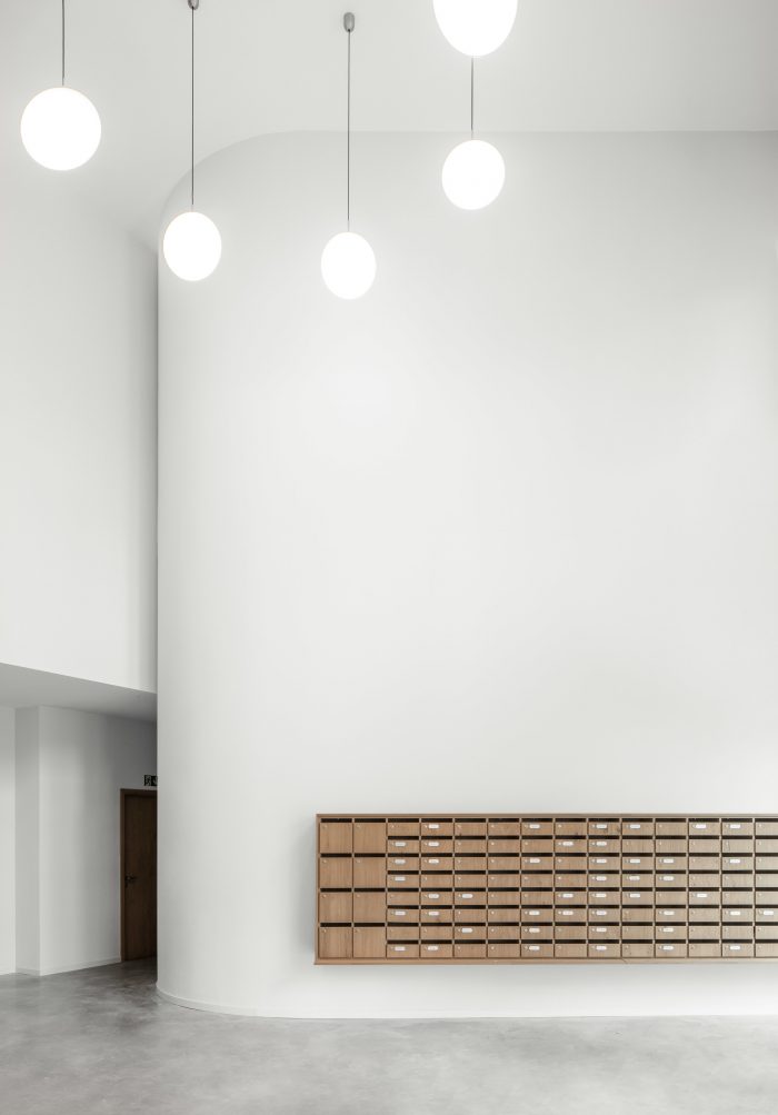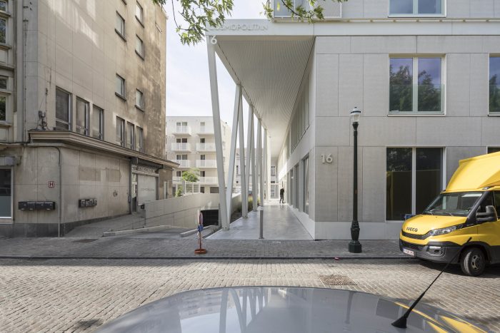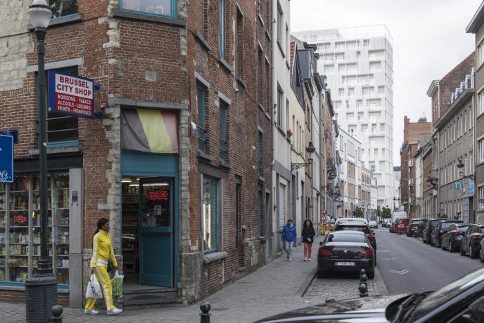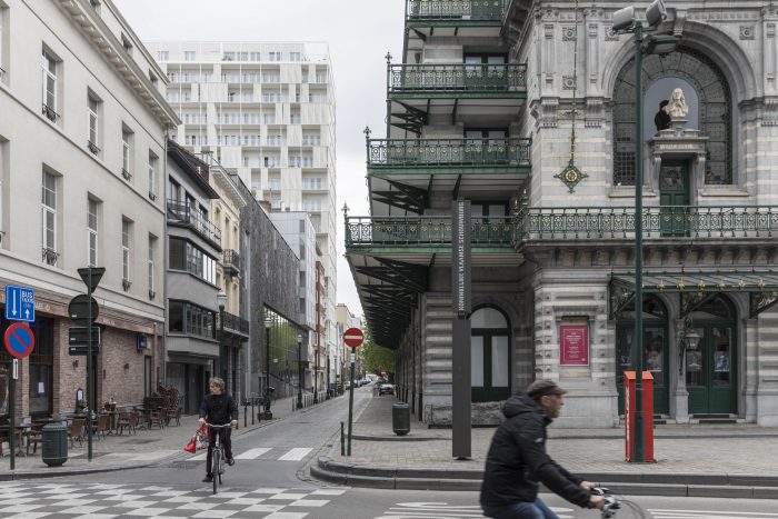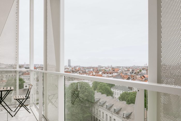 At the Quai aux Pierres de Taille, a former quay of the no longer existing harbour of Brussels, surrounded by old warehouses and next to the Royal Flemish Theatre, a 60’s office tower rises above its neighbours. The style and scale of the construction contrast with the local urban fabric, but thanks to its perpendicular implantation to the street the tower remains discreet and often unnoticed. The project profoundly transformed this building into a mixed-use complex comprising 130 units divided in a variety of dwellings ranging from compact smart studios to generous 3 bedrooms apartments.