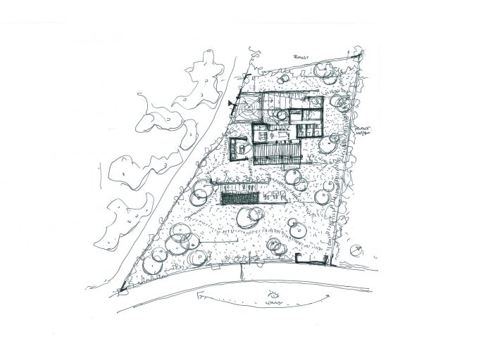 该项目的主要挑战是使建筑适应地形,以尽量减少其对视觉和环境的影响。利用倾斜的地形和稀疏的树木覆盖,房子位于地形的最高处。