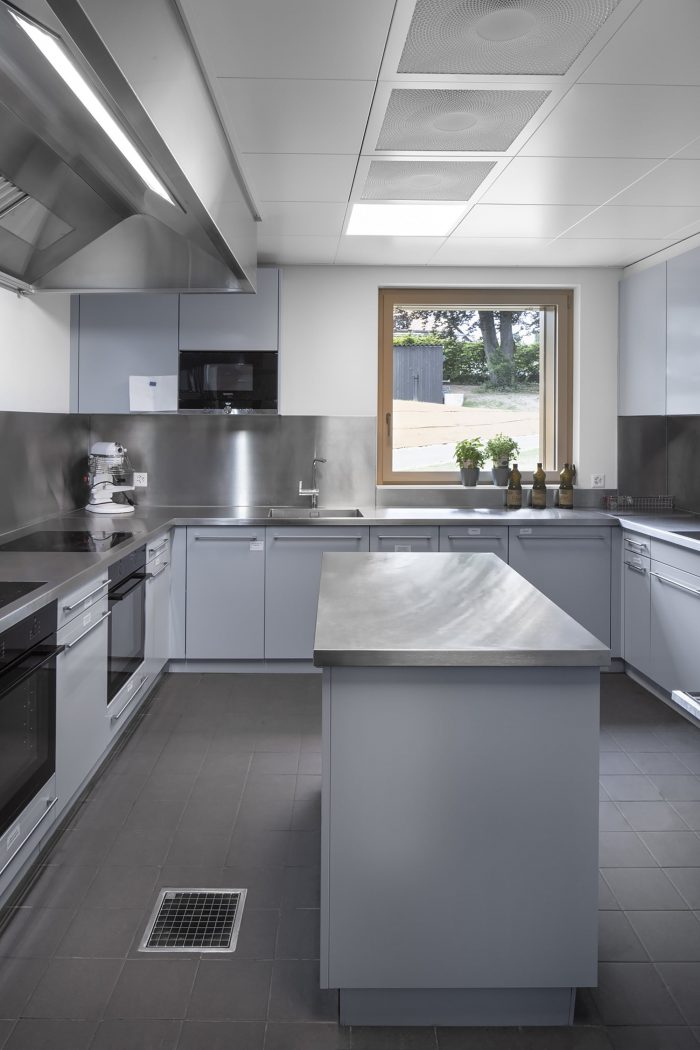 一个环保的建筑。选择轻质的 "木结构 "建筑,可以利用当地资源创造一个健康和环保的环境。施工和现场组装都很迅速,因为建筑很轻,地基最少,因此更经济。屋顶有一个高标准的绝缘(标准的 "MINERGIE P - ECO "类型),高度限制了能源消耗。建筑物由颗粒锅炉供暖,能源性能高,对环境影响非常小。