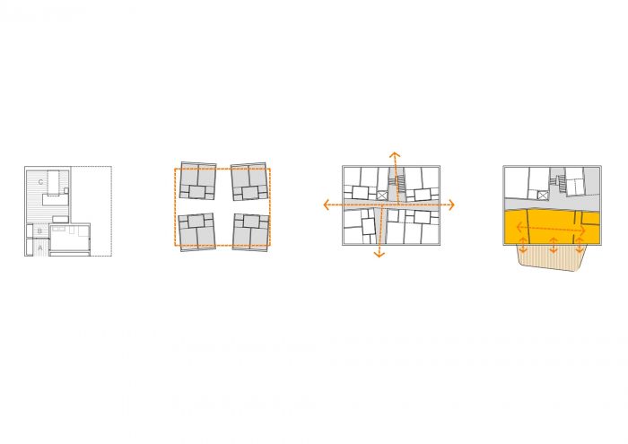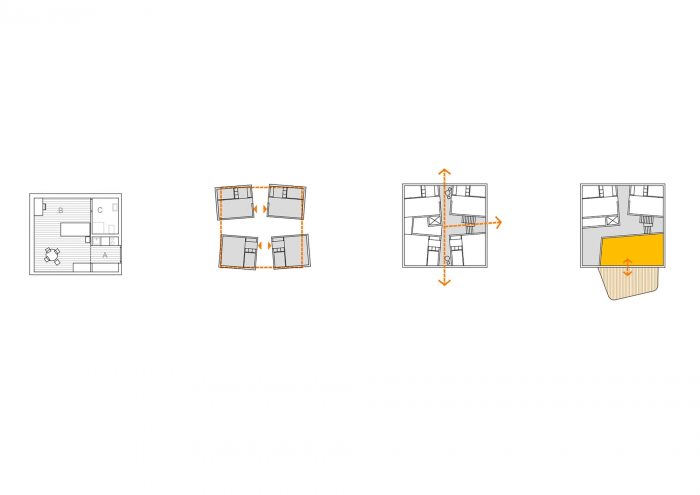 方案:一个 "有能力 "的建筑。特别注意卧室和学习区。目的是为居民提供一个非常舒适和亲密的生活空间,受益于花园和地平线的有框视野。每个房间都被设计成与其他房间不同,允许多种布局的可能性(床、书桌、衣柜的位置),并通过故意在两个角度上的非正交的几何形状。其结果是一个开放和动态的空间。此外,每个房间的窗户位置都不同,这使得它们更加独特。