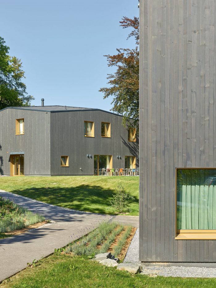 The nature of the programme, which combines spaces that foster autonomous living for the adolescents, together with spaces in which "interaction" is also the aim, has resulted in the creation of a courtyard, common to the two buildings of Coudraie and Les Hêtres, as well as the building to be built later. This small and central space is a hub of encounter for all residents, without affecting the privacy of each of the rooms built. The architectural structures fit naturally into the constructions of the municipality, with stairs similar to those of the nearby context, as well as unique geometric features that are likened to those of the neighbouring houses.