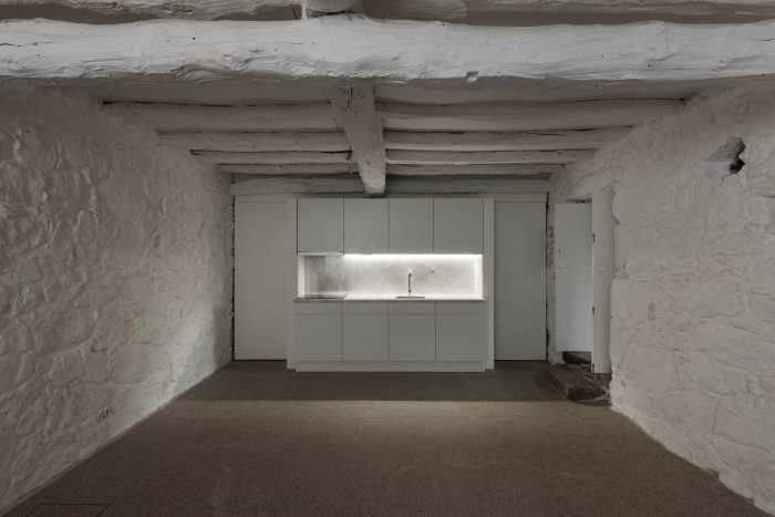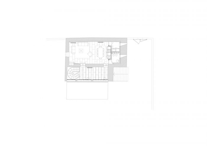 The signs of modernity arise punctually and naturally due to the inevitable functional spaces alteration. However, the project does not pursue to omit but rather to highlight these gestures as temporal sequence of the object. The stairs - new element - consists of the maximum exponent of this intention, both for the sculptural and material quality as for the contrast of the metal with the density of the adjacent stone walls.