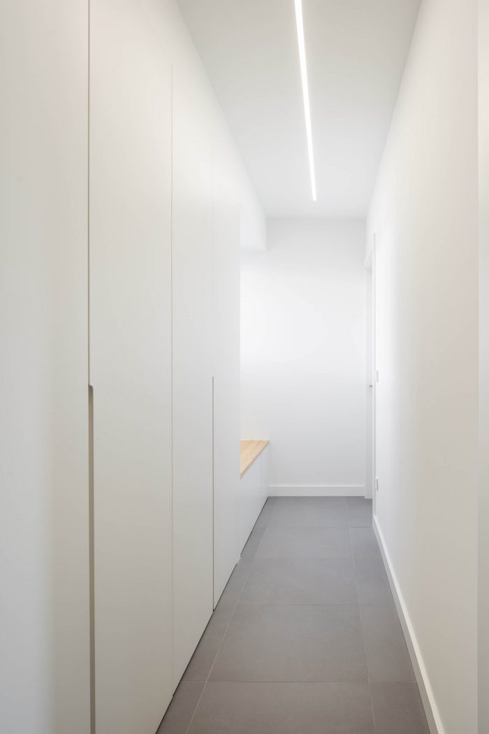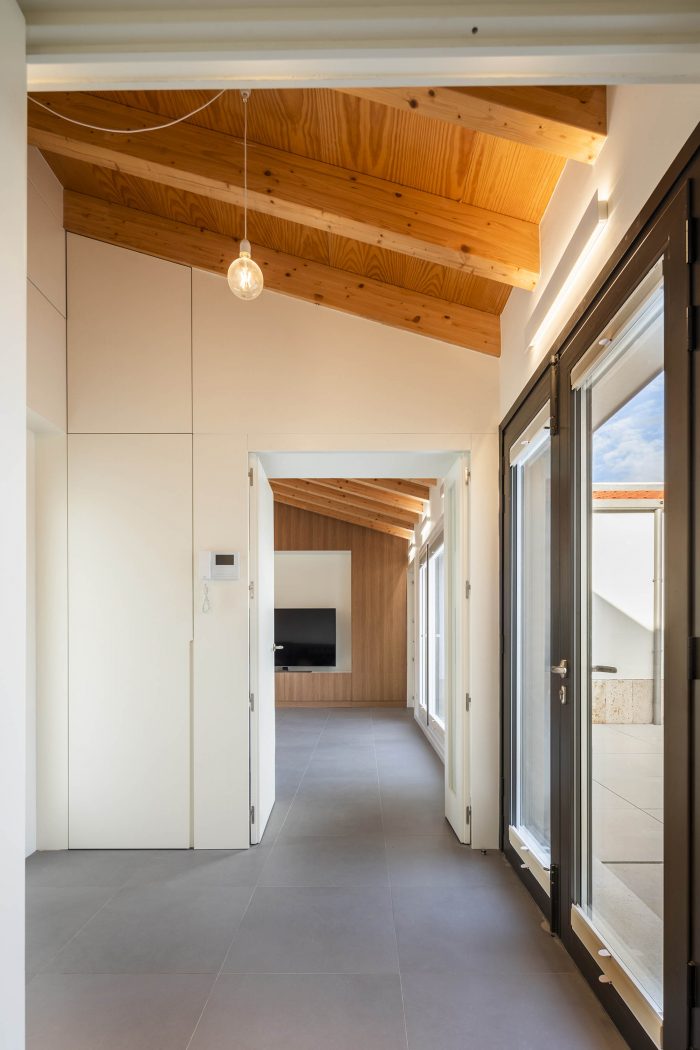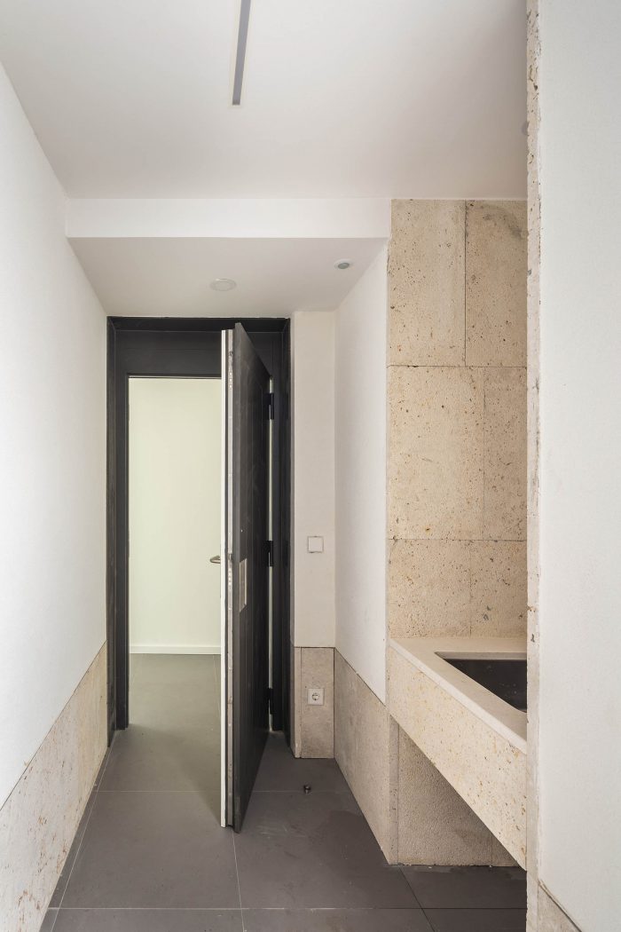 所选择的系统符合最新的传统建筑--承重墙、木质平台上的传统瓦片屋顶--而外部覆层也寻求与环境的这种联系--来自该地区的石灰石膏和石头覆层。在室内空间,处理方法也很相似--浅色的墙壁和地板,暴露的屋顶结构--尽管在更多的公共区域,功能性的覆层元素用木板突出。