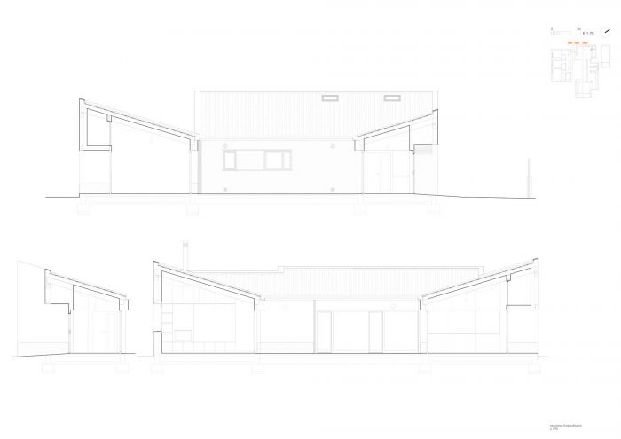 这个四合院建在一个小城镇的郊区,在一个普通的平坦的地块上,可以从两个相对的侧面进入。发起人确定的方案相当于一个常住的住宅,其中也有社会活动的计划。围绕天井的组织使其有可能压缩休息区,并将其与具有预期公共用途的空间--厨房和餐厅分开。
