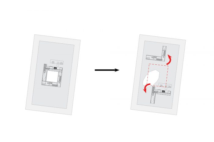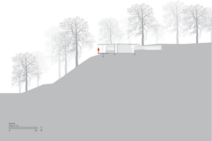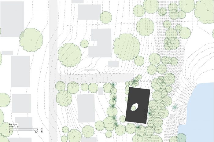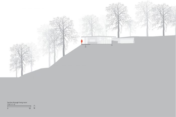 Entered through an underground garage court, the house's six spaces flow in a continuous loop around a series of separate bathroom and storages cores that flock and disperse to allow the rooms to be experienced as a single loft or as a series of individual rooms. Maximizing usable space while minimizing poché, each storage core contains all of the requirements of daily living, WC, shower, closets, etc; allowing each room to be experienced collectively when open or privately when closed. Because no room is compartmentalized and isolated as in a conventional home, every room can be a living space during the day and a sleeping space at night. Continuous perimeter circulation inside parallels the covered roof terrace outside.