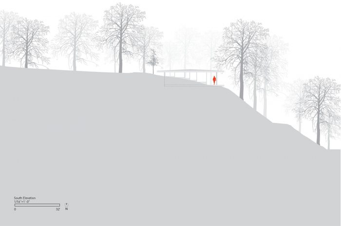 Framing the central living spaces is a single courtyard. Planted to continue the surrounding indigenous landscape, the courtyard is conceived as a spatial divider, like a family camp, to consolidate and share the conviviality and burdens of daily living without feeling overcrowded at night. The courtyard is excavated in plan to optimize views and passive solar gain, allowing light and air inside, while sinking the house into the hillside to maximize thermal insulation and intimacy from the urban context.