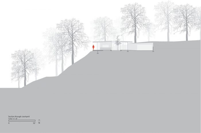 By utilizing a marginal site and downsizing the conventional house by 1/3, the Courtyard House sponsors more collective and ecological forms of life without sacrificing the necessary privacy of daily living. This new organization, a horizontal constellation of spaces, varies from individual to collective, while extending the exterior environment inside and expanding it socially. There, co-habitational activities may be forged between inter-generational families and friends, while fulfilling the new demands of a dispersed aging population.