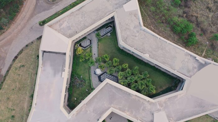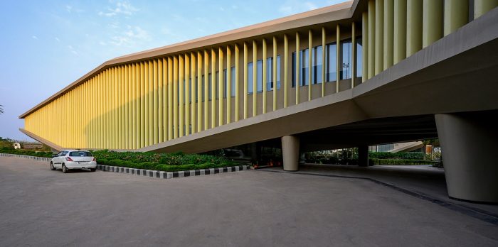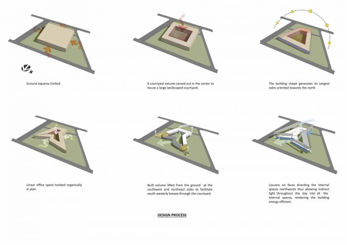 The courtyard office derives its principles from traditional Indian courtyard houses, resulting in office spaces that vary in volume and in orientation, allowing open spaces to be integrated with enclosed ones, and creating energy-efficient workspaces.