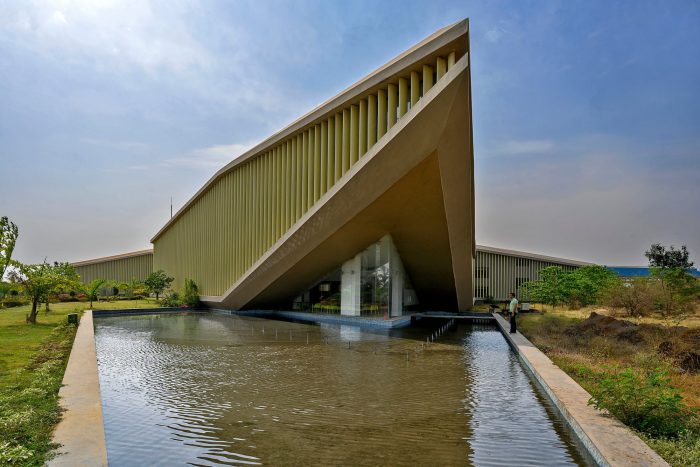 The building shape generates its longest sides oriented towards the north, with angled louvers on the other faces directing the internal spaces northwards. The orientation allows indirect light throughout the day into all of the internal spaces, rendering the building energy efficient.