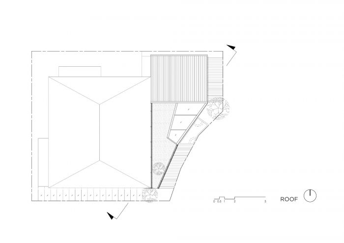 三层楼的设计结合了所有需要的功能,即:一个活动空间连接到现有的房子和室外露台,一楼是老人的卧室,二楼是主卧室,顶楼是生活区。由于现有的花园被建筑所取代,它被抬高到顶层,以保持绿色区域,同时增加房屋的室内使用空间。