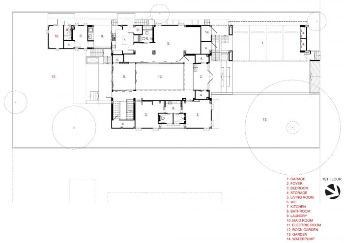 该房子是一个5个卧室的房子,建筑面积约650平方米。位于一个私人小巷,所以周围的环境非常安全和平静。业主的设计要求是参考日本凉山寺的日本石制庭院的图片。业主希望在房子里有一个类似的石头庭院。 此外,该地区有几个清真寺的噪音和下雨时垃圾场的异味,也是场地问题。通常,在我们的热带气候下,由于强烈的阳光和热量,我们尽量避免使用封闭的庭院。这个房子是一个例外,我们做了一个不同的设计方法。我们让它从外到内。我们把石头院子搬到里面,控制环境,避免噪音和气味,并处理其他问题。