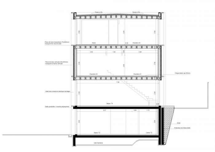 The project is looking into providing immediate answers to the issues at hand. In order to do this, the building methods we have looked into had to be precise and to integrate the fact that the wood we would use would not reach the required 13% humidity rate, as is normally the case in all traditional wooden structures. Doing so, we avoided shipping the wood on the mainland, lowering the carbon footprint of the project at the same time.