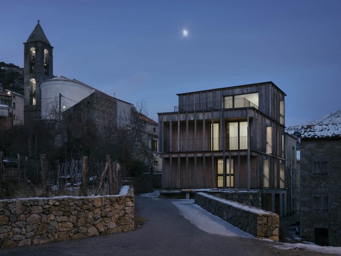 Firstly, there is a social aspect to it as not only it is city-owned, but the typologies are different to respond to the diversity of situations within Corsican villages. Secondly, you find an environmental angle as it is a now pressing matter for the whole island. This building is dimmed “low-carbon”, which makes it the first of its kind in Corsica. Finally, the architectural aspect of the project, of course, lies in the form of a contemporary construction that fits the needs of modern life but in the midst of old, traditional fabric, ever-present in our small villages.