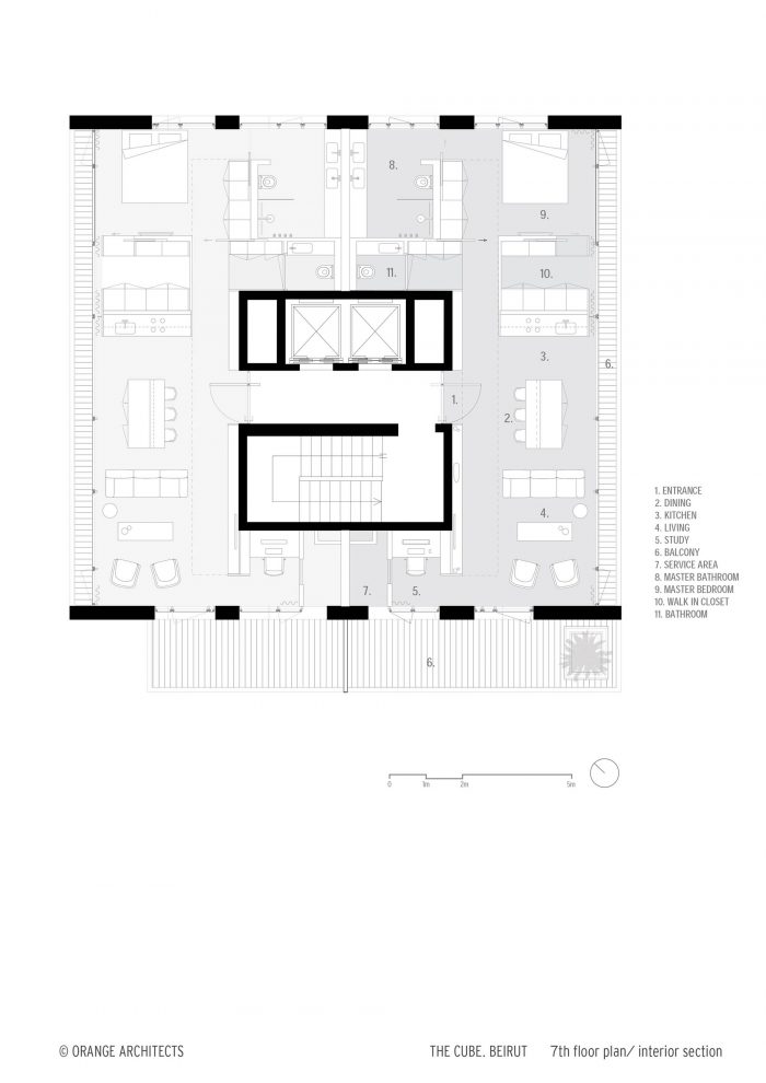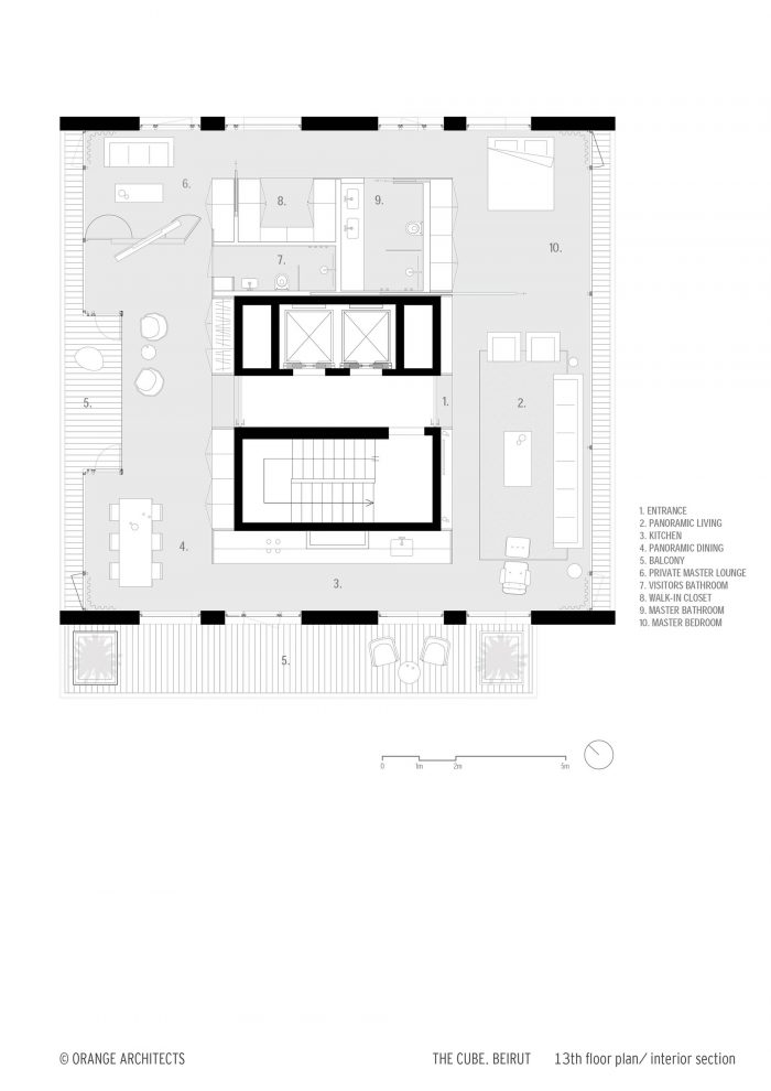 14个叠加和旋转的平面设计共产生了19个有吸引力的公寓,面积从117到234平方米不等,有流动的空间,大阳台和墙到墙的窗框。由于其在城市边缘的独立设置,Cube本身和贝鲁特市中心的景观都是看不见的;充满活力的城市是你个人的墙纸,无论白天还是晚上。