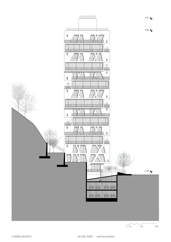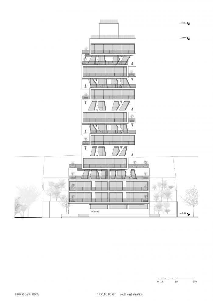 The construction of the residential tower The Cube in Beirut is finalized. Orange Architects designed the iconic tower for the Lebanese development corporation Masharii.