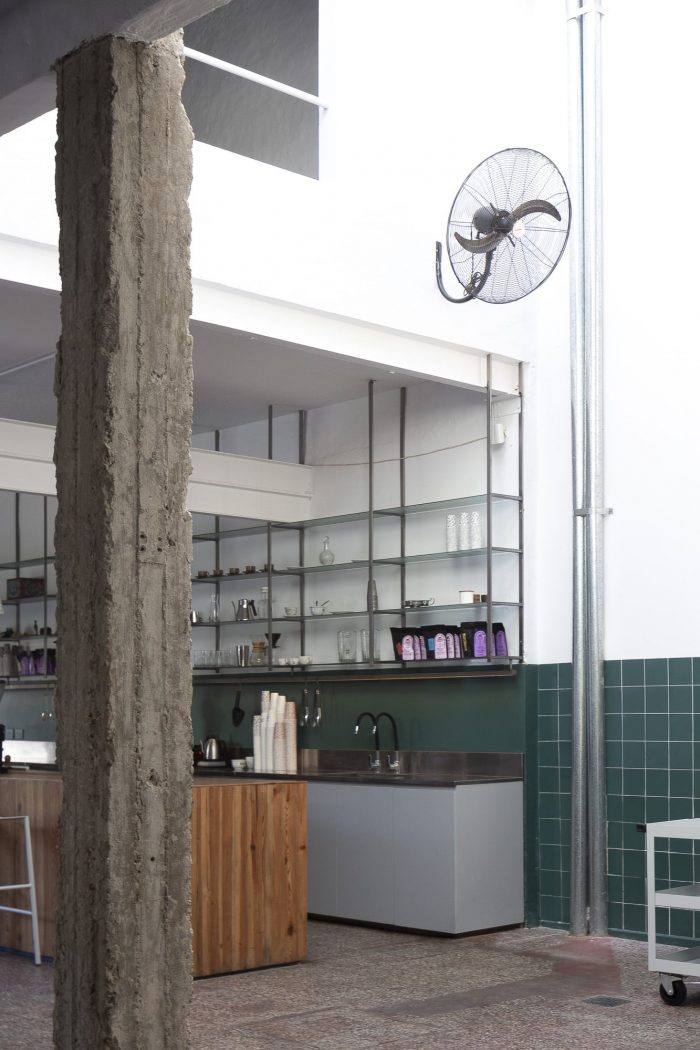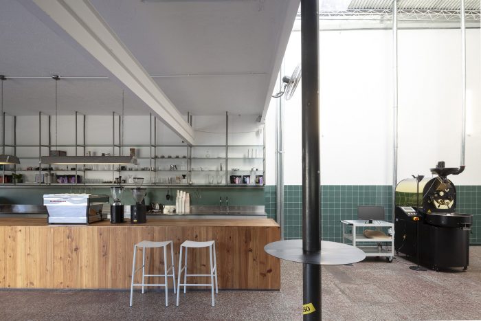 The project is conceived as a space to house the coffee roasting process and then as a cafeteria where the coffee be consumed in its different variants and formats. Located on a corner that borders an avenue and a street, it was originally a car repair shop. It is a large space without interior divisions, with an L-shaped floor plan where its two sides contain a double-height space inward.
