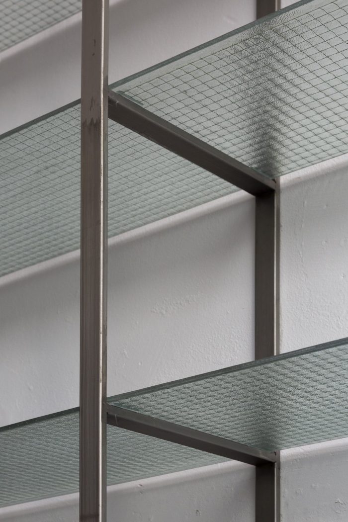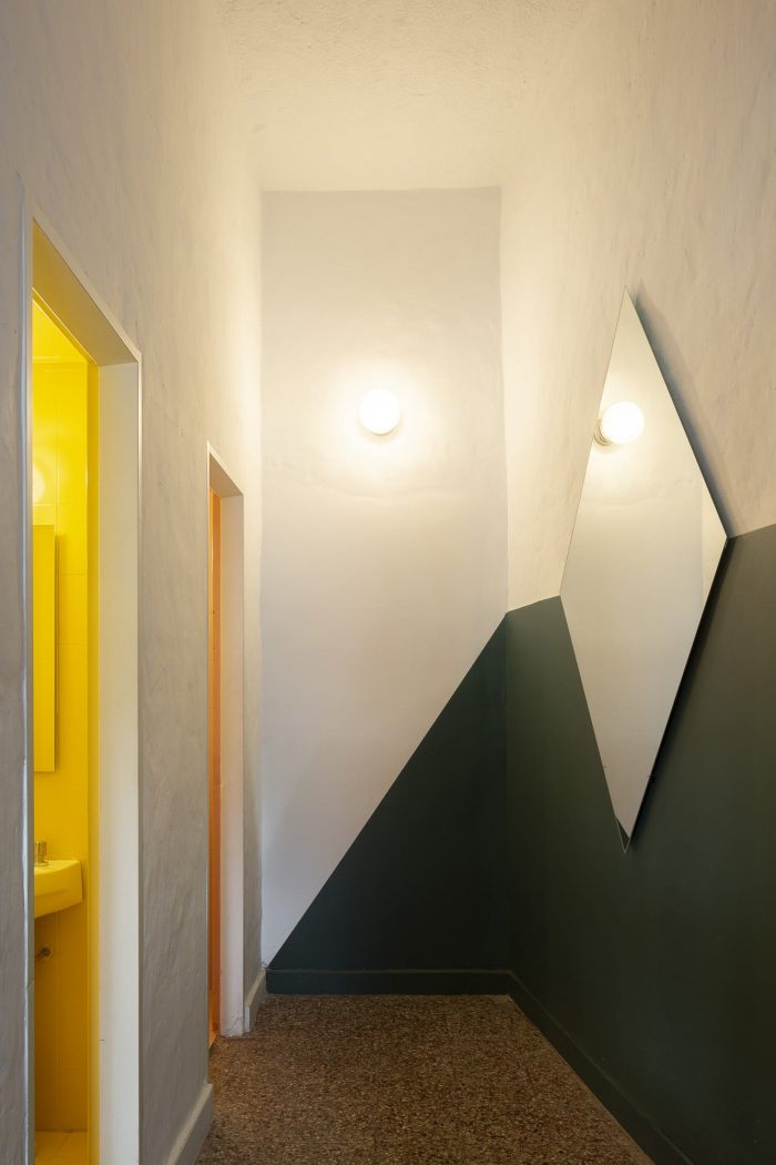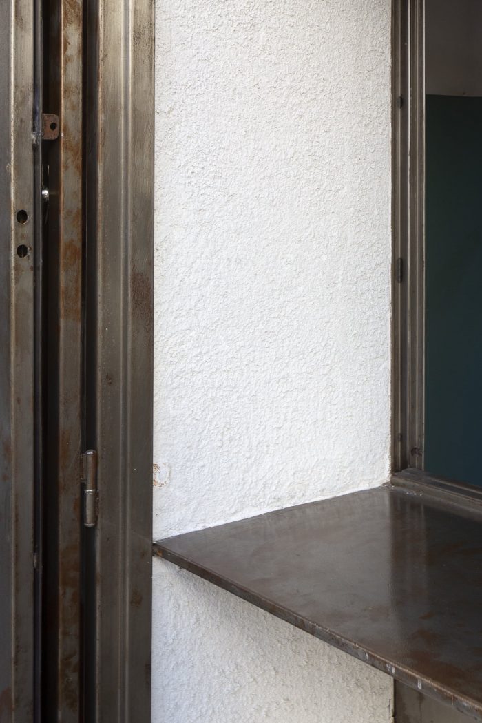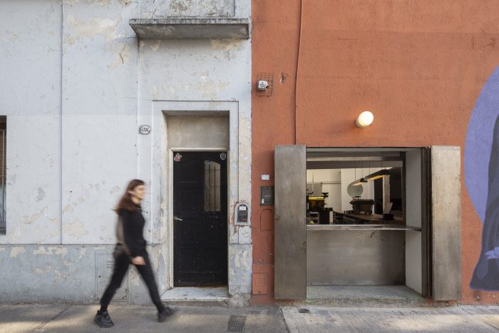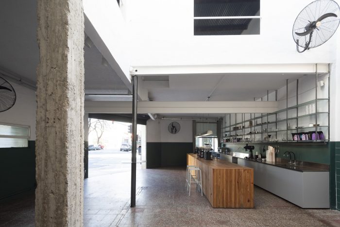 Some indications have been taken from the original workshop for the reconversion of the space. On one side, the corner gate remains, which allows it to open completely towards the sidewalk and thus works in the same way as it did towards the mechanical workshop, as a semi-covered space, a large gallery. On the other hand, it was decided to keep the entire façade intact so that when it is closed it maintains the previous landscape and generates a great contrast from the interior transformation.