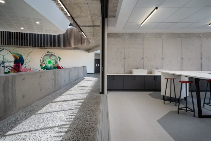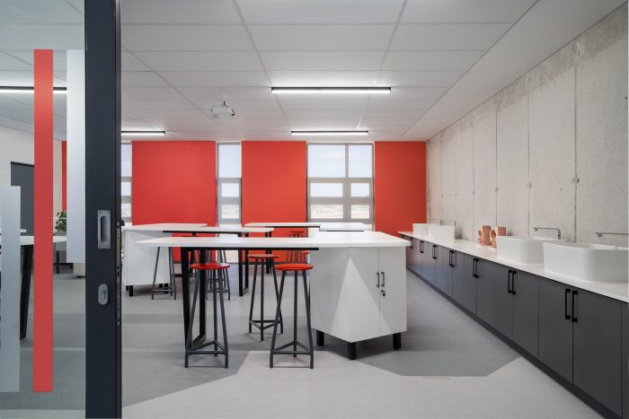 Usually, the classroom is inclusive and private, the hall and passages are semi-private, and the playground is a public space. Now, an art classroom opens into an atrium that can be turned into a gallery or exhibition area, also sharing space with the cafeteria. The cafeteria has a practical kitchen which is used for consumer studies by the hospitality learners. The consumer studies classroom is linked to the cafeteria as well. This type of design provides flexibility and hybrid use, essential for a school that will always be adapting to future needs.