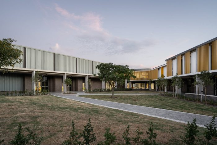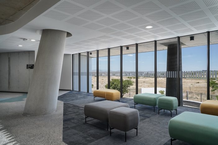 Located to the northeast of Durbanville in the Western Cape, the site forms part of the larger urban plan for the Phesantekraal area. The brief called for a high-quality innovative school with a range of cultural and sports facilities. It was important that the design process was not isolated to a single author. The scheme came together through a collaborative engagement with learners, teachers, and other consultants. Inspiration was drawn from the surrounding landscape and the mountains in the distance, the color of the canola fields, and the materiality of existing structures located on and around the site. The design emits an exciting take on form, texture, and scale.