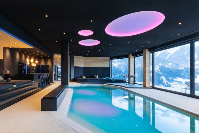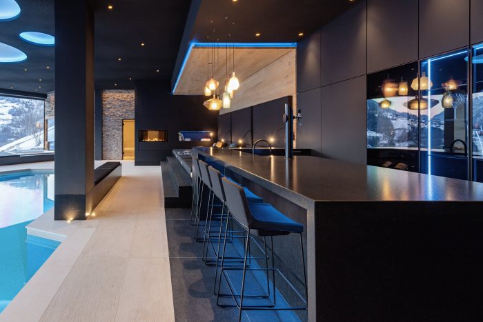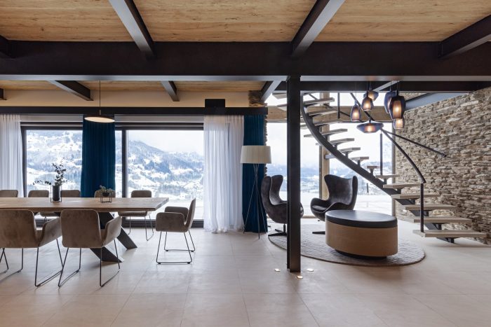 Relaxation in the middle of the Alps surrounded by picturesque mountains. This dream has become reality with Chalet D in the Austrian Alps. Chalet D was designed as a holiday chalet including a spa area, where several friendly families can spend their holidays together.