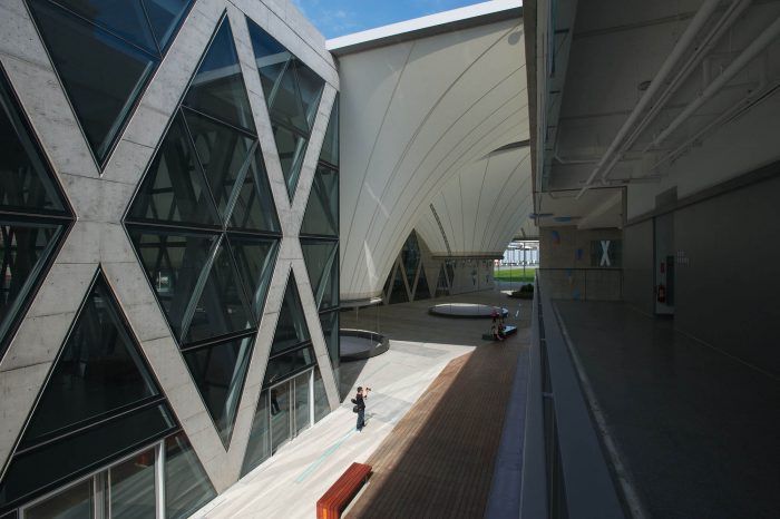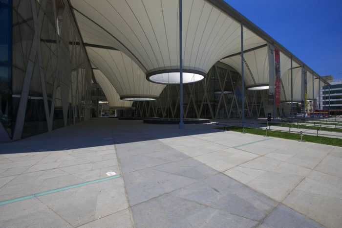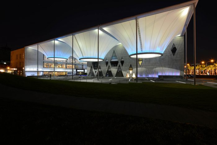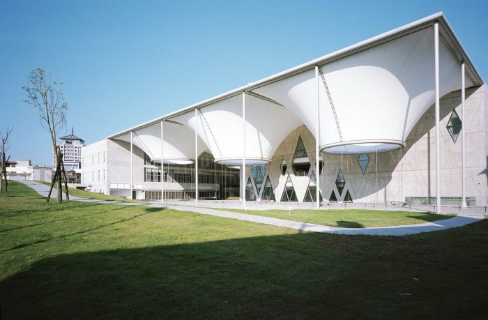 Dadong Art Center is located in Kaohsiung City in the economic center of southern Taiwan. Connecting the dense context of historic Feng-Shan District, a major park, and the Feng-Shan River, the Art Center creates a sequence of public spaces by means of membrane-covered interstitial open space between four major volumes- theater, exhibition hall, art library and the education center.