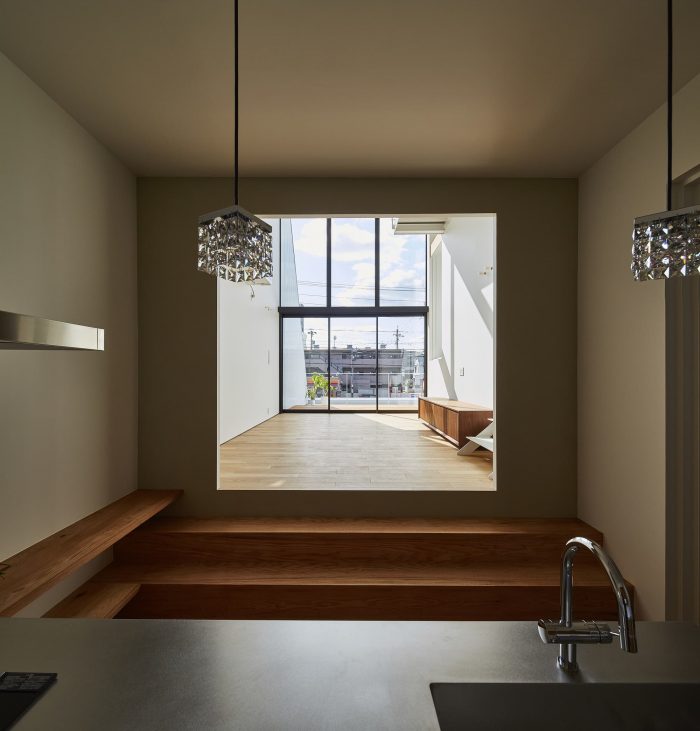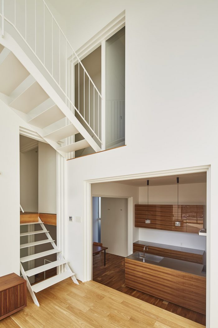 Traffic line as stairs and walls opening at each rooms has been planned to feel like exterior open space in usual life, because sunlight have been reached each rooms through big opening and double floor height at living.