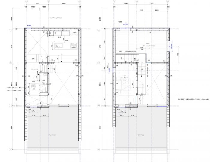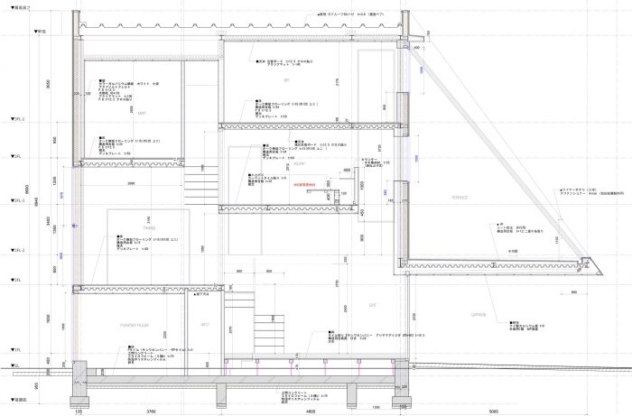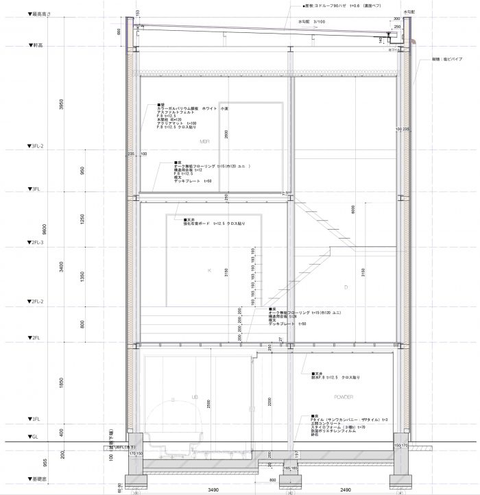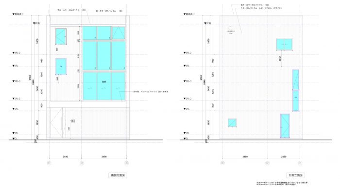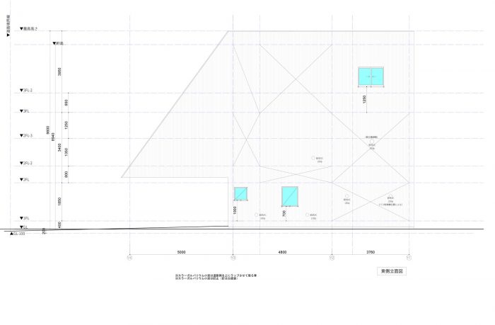 It is three stories residence near the central Nagoya city. Requirements of client are 4 parking spaces (2 of them are with roof) and high ceiling living room on second floor with ample terrace.