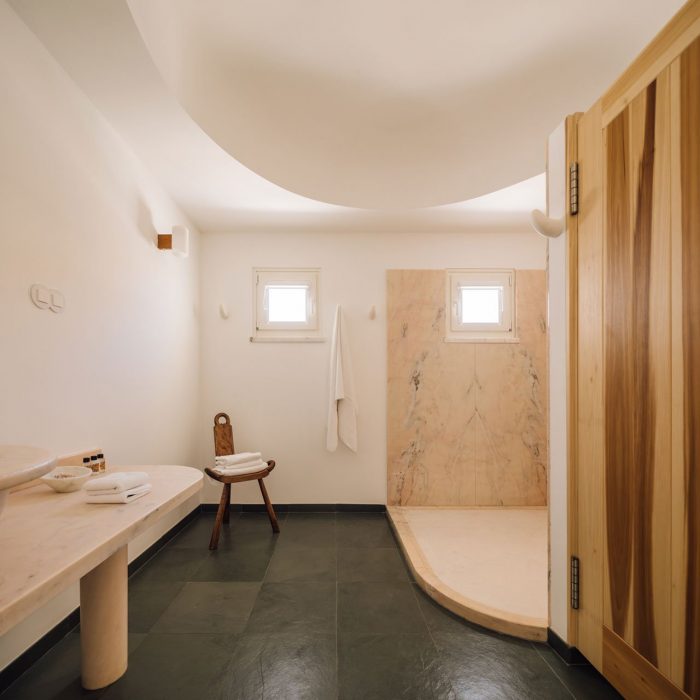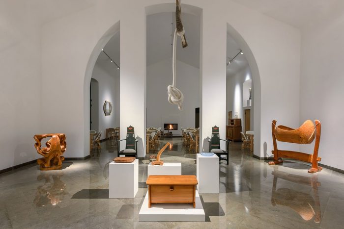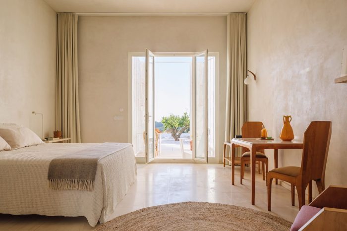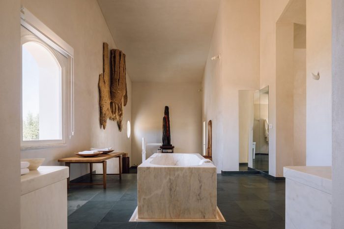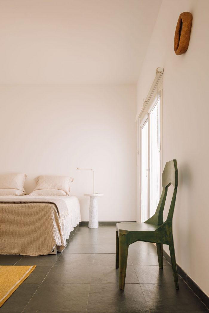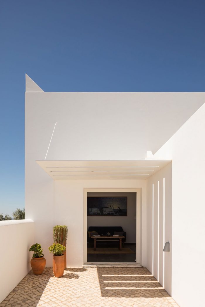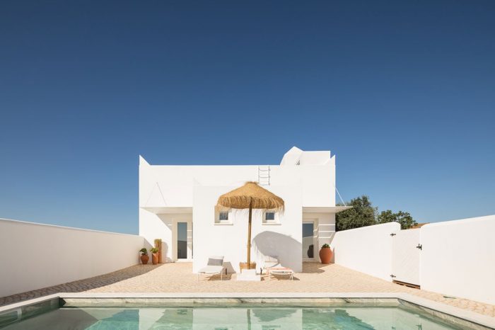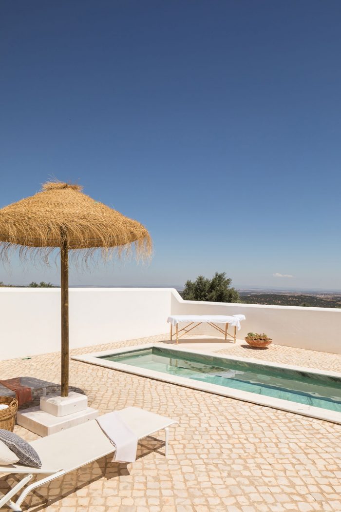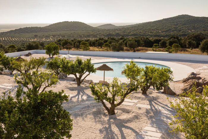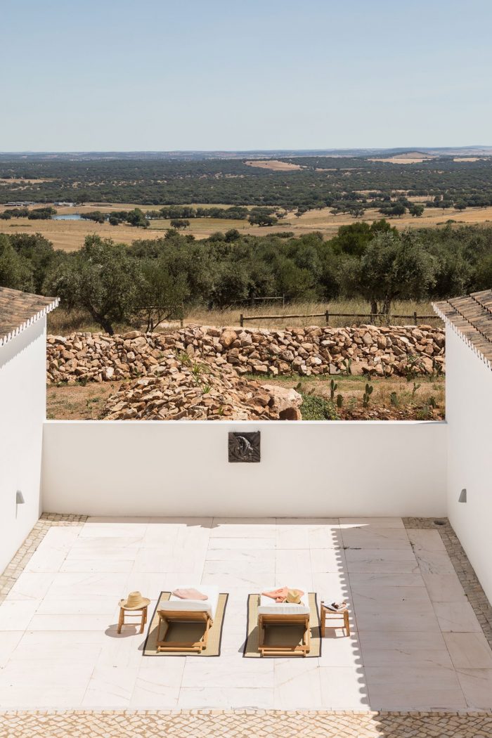 DáLicença boutique hotel in the Portuguese countryside, is that it was initially intended to be a tranquil, private refuge from the hustle and bustle of the city. Perched on the hills of Alentejo in southern Portugal, a few kilometres away from the medieval town of Estremoz, the location enjoys expansive vistas of rolling olive groves, the forest of Serra d’Ossa and several small whitewashed villages, which form an earthly constellation of flickering lights during the night. No wonder then that in their search for a holiday retreat, Paris-based Victor Borges and Franck Laigneau instantly fell in love with the place. But rather than keeping it to themselves, they decided to share this euphoric setting, as well as their common passion for the arts, with a wider audience.