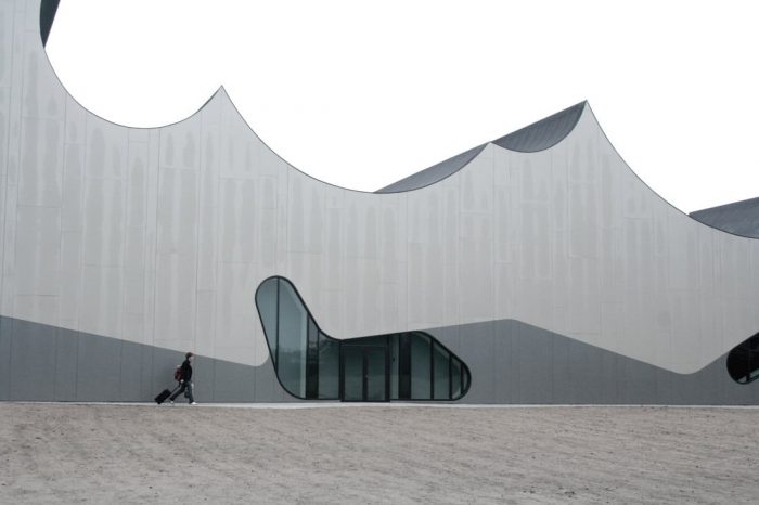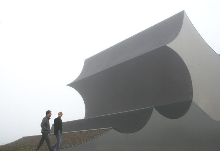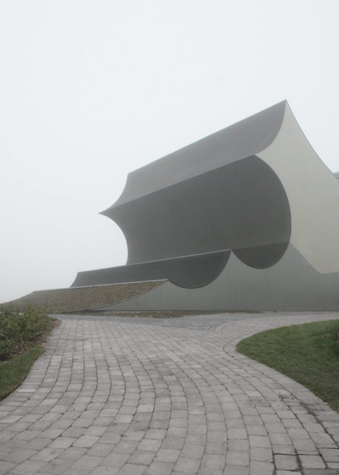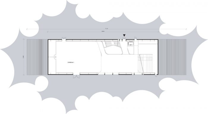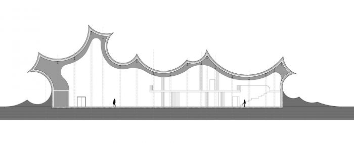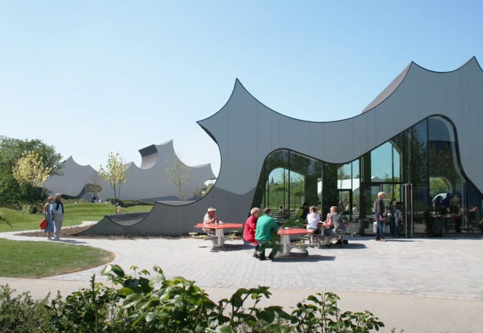 新建筑从地面升起,提供了阐明室外景观和室内展览融合的空间。这种活跃的地面根据公园的项目和位置进行调节。建筑物的端点模糊了建筑和公园之间的界限,提供了由内向外的空间作为展示区和与内部临时展览相关的投影面。剪影,作为土地形成的群体,定义了丹佛斯宇宙独特的新规划的地平线。