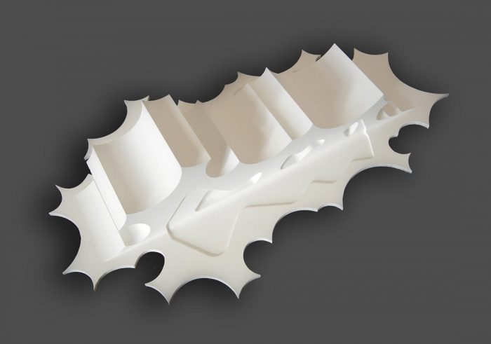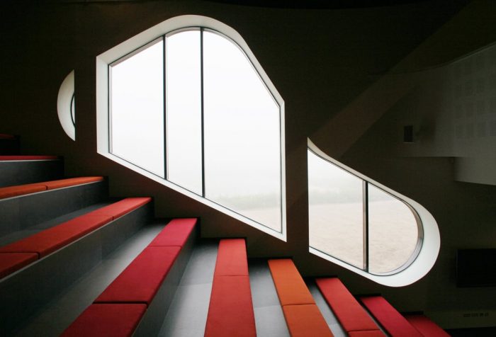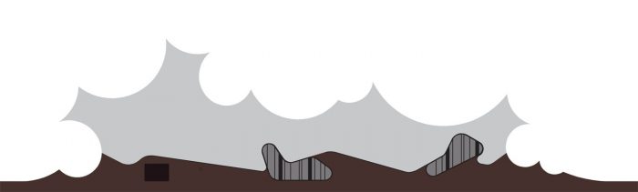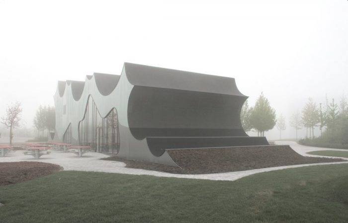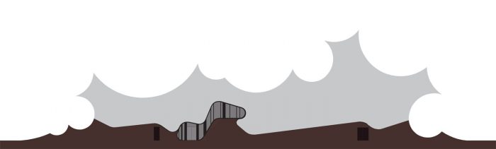 The new buildings rise up from the ground and provide spaces which articulate the fusion of outdoor landscape and indoor exhibition. This active ground modulates according to program and location in the park. The endpoints of the buildings blur the line between building and park by offering inside-out spaces as display areas and projection surfaces related to the temporary exhibitions inside. Silhouettes, as groups of land formations, define the unique newly programmed horizon line of Danfoss Universe.