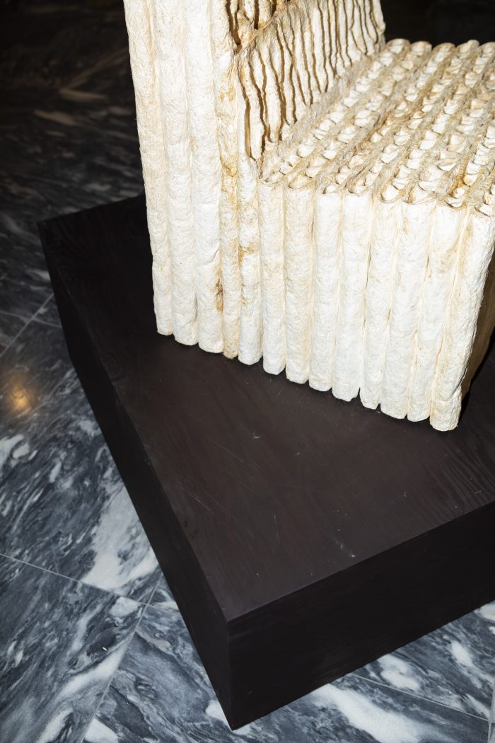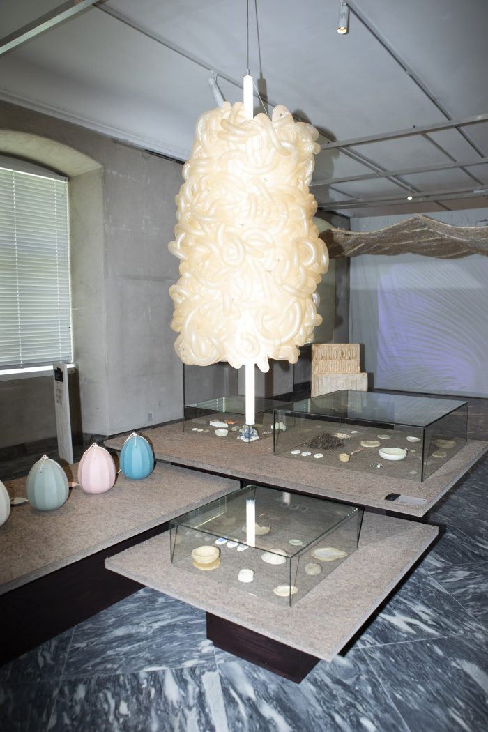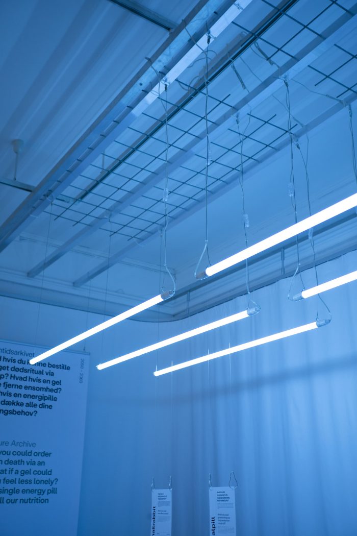 The materials chosen are primarily from a vast range of local Danish firms providing sustainable materials. The materiality of the exhibition is carefully chosen including a variety of textiles, lighting techniques, and diverse textures in layers and through transitions. Primarily, materials were sourced and used to take a stand on the future, and expose choices and surfaces so that they tell a story about their creation, character, and function. “We believe that honest and raw designs invite the visitor inside, opening the design process choices as part of the inspiration for the rich and creative opportunities of what the future is, and that design plays a role in this.”