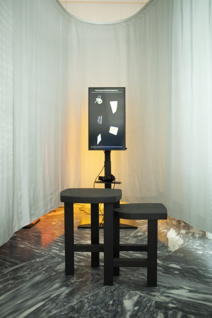 所选择的材料主要是来自丹麦当地大量提供可持续材料的公司。展览的物质性是精心选择的,包括各种纺织品、照明技术、以及层层叠叠和通过过渡的多样化纹理。主要是,材料的采购和使用是为了站在未来的立场上,暴露出选择和表面,使它们讲述一个关于其创造、特征和功能的故事。"我们相信,诚实和原始的设计邀请参观者进入,打开设计过程中的选择,作为对未来的丰富和创造性机会的一部分灵感,设计在其中发挥着作用"。