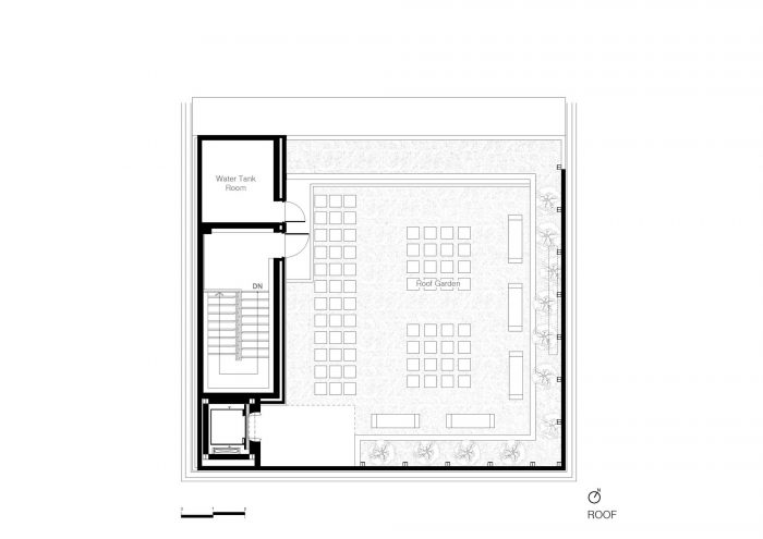 In addition to the front side exposed, the other three sides are focused to be renovated. The building is set to increase its height in order to highlight the symbolism of the architecture, being almost the same height as other neighboring buildings. The back side on the 1st floor is designed with parking lots pursuant to the laws, and rooftop with upper terrace of various functions.