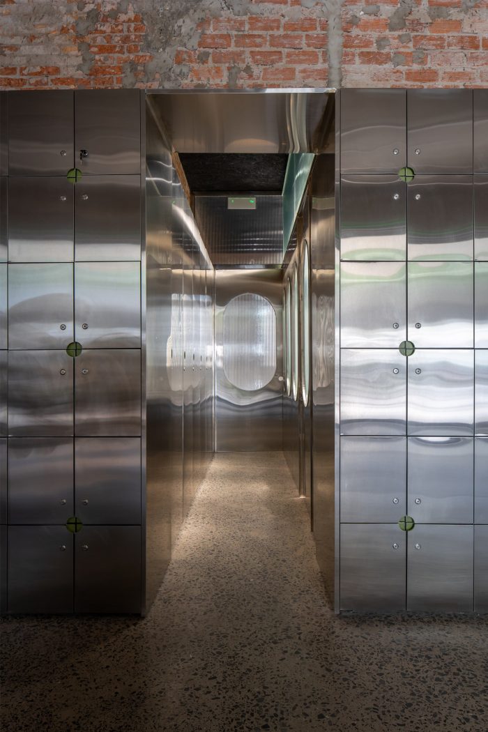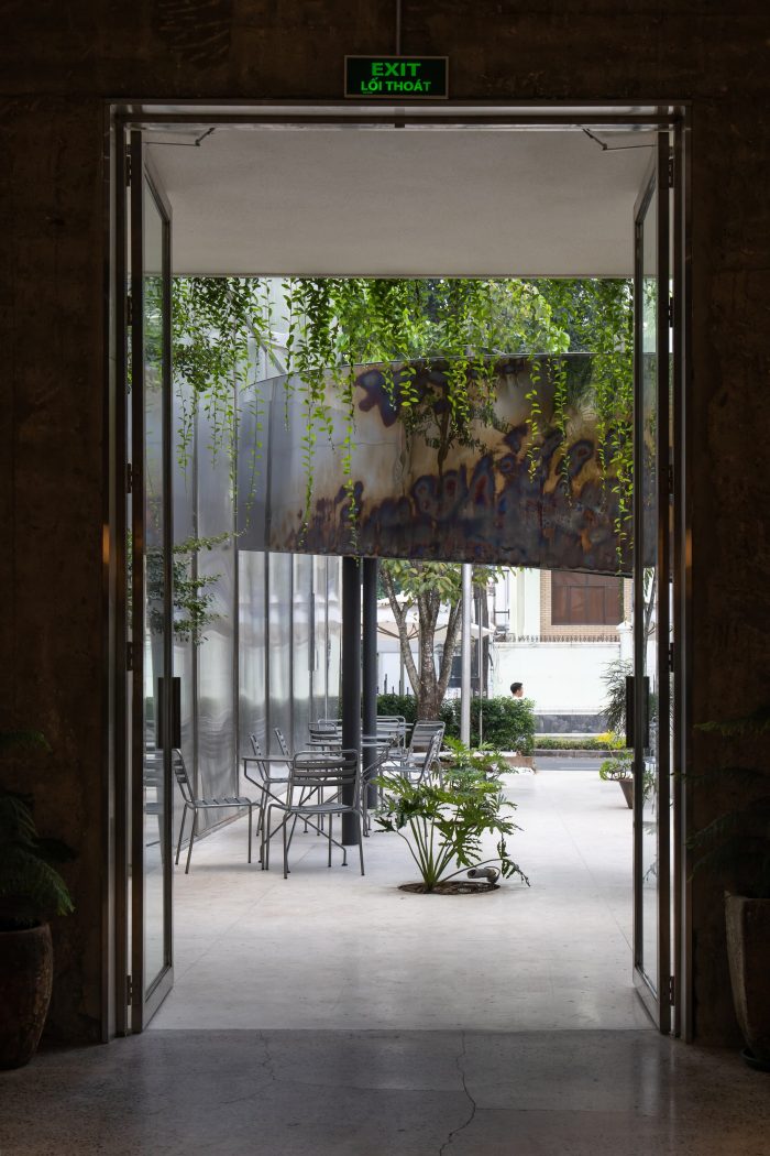 Material selection is informed by the villa. Keeping the original brickwork and wooden beams, the designers chose stainless steel for visual contrast and durability throughout Vietnam’s rainy season.