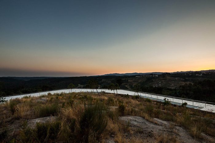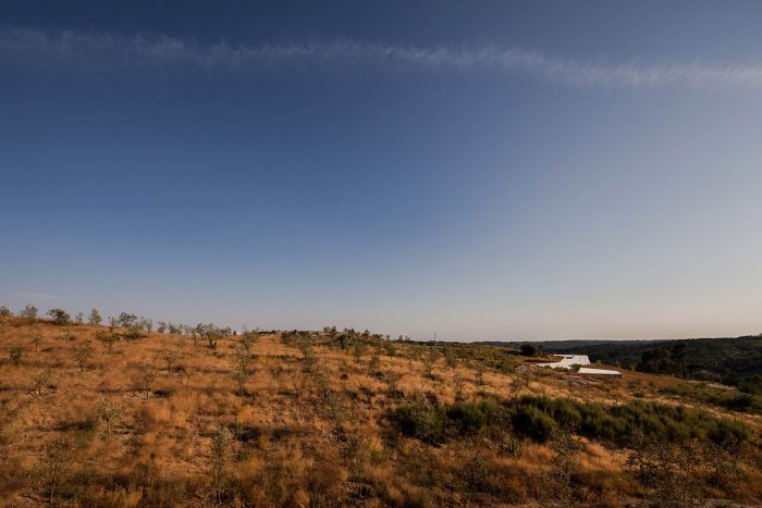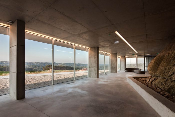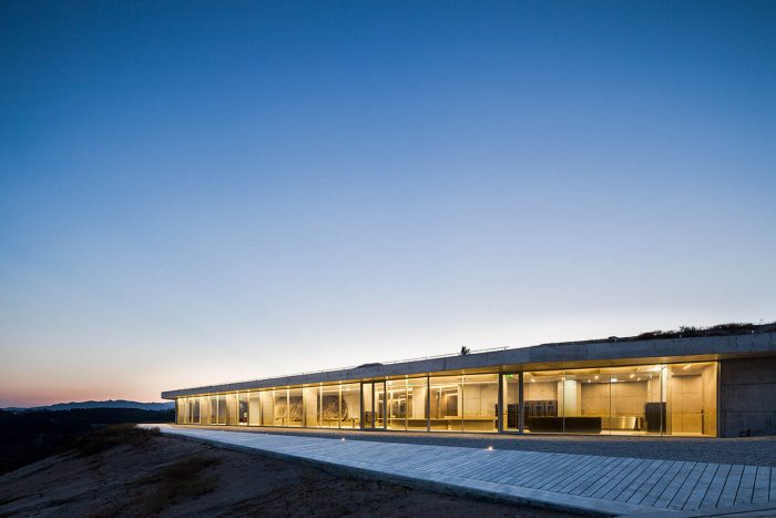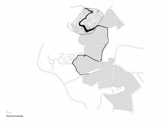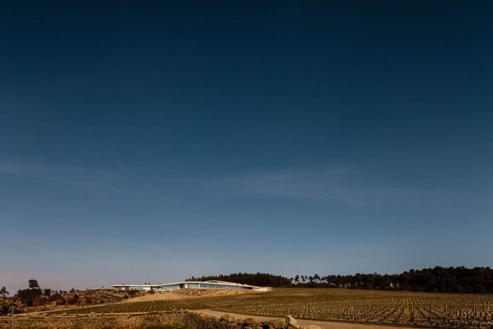 The attractive point where the building is located creates a tension between the existent building and the new construction, being constituted as two poles, forcing the accomplishment of a course to relate them. The implantation of the new construction is just the continuity of that course; a drawing in the landscape, a built course leaning towards the beauty of the linear rhythm of the vineyards.