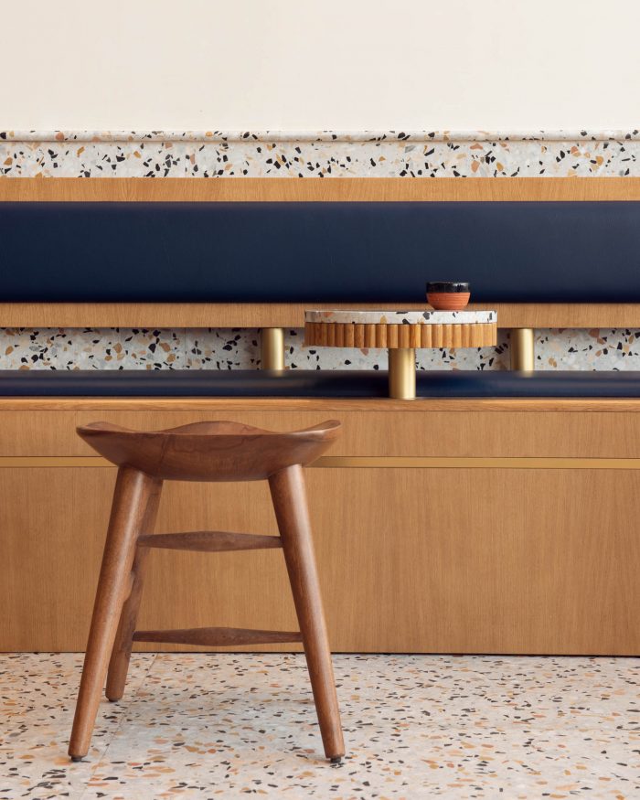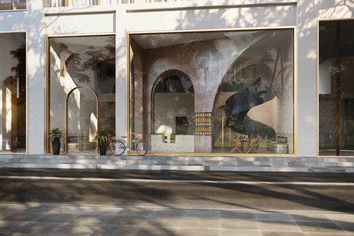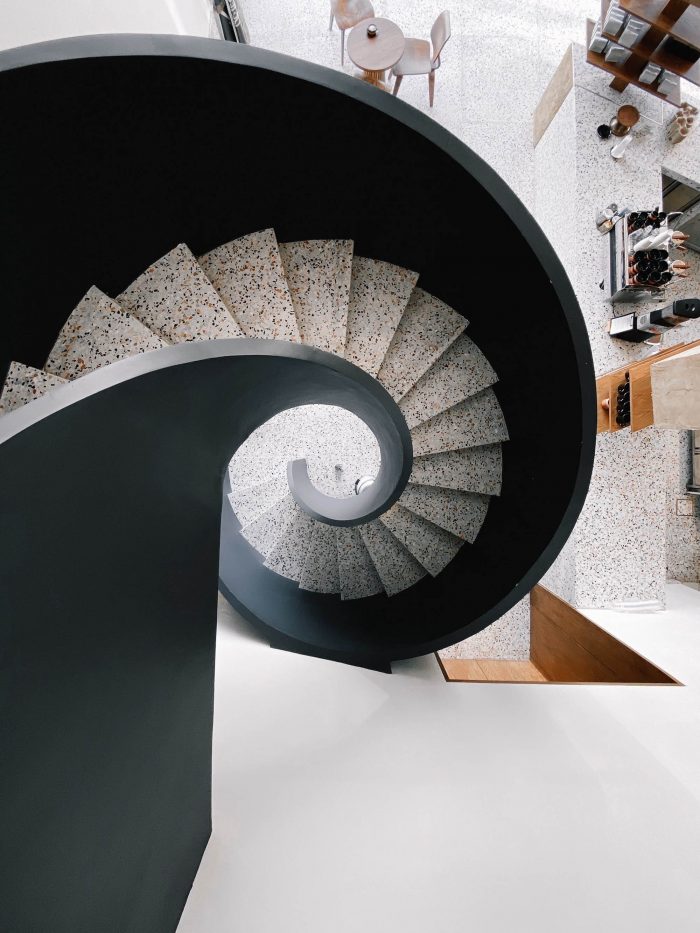The shape of the historic Islamic arches combined with the mud finishing contributed to the feel of local sanctity. After all, the coffee shop is a Saudi brand and the space certainly reflects that. Nonetheless, the shop has a modern edge to it thanks to metropolitan touches such as the use of sustainable Italian Terrazzo for the floor and the deep blue spiral staircase. The new Elixir Bunn shop, designed by Azaz Architects, has become a landmark among the fast growing coffee shop industry in Saudi Arabia.