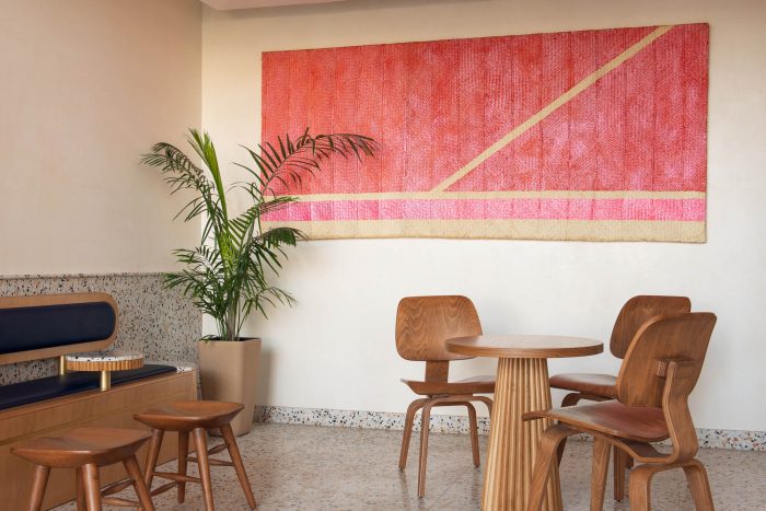 Since then, coffee in the region has evolved, and today, the coffee industry in Saudi Arabia is flourishing. To match that progression, Azaz Architects created the space as a “Deco Temple” to take coffee seekers into a modern day spiritual-like experience. The structural column in the center of the space created a challenge for the designers. However, the team at Azaz Architects embraced it, transforming it into the center point of its design. New walls blossomed from the column, shaped into massive overreaching arches.